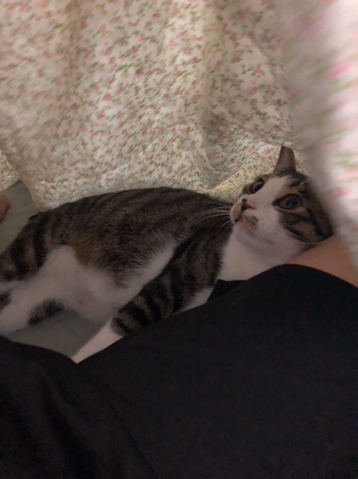 이불안에 있을때면 고양씨는 다리사이를 좋아한다.